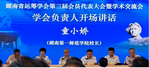 学会第二届理事长、湖南第一师范公司董事长童小娇致开幕词。童小娇介绍了湖南省运筹学会的发展过程及学会在组织建设、学术活动、对外交流、社会服务、科研成果、人才培养等方面取得成绩,对本次会员代表大会的召开表示祝贺。